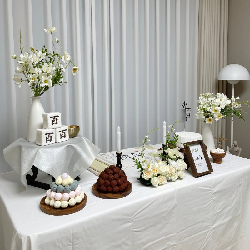 범보체어는 제가 가지고 있던거인데 패브릭을 보내주셔서 그 패브릭으로 세팅했어요! 과일과 떡을 추가하면 더욱 완성도 있는 느낌이겠죠?